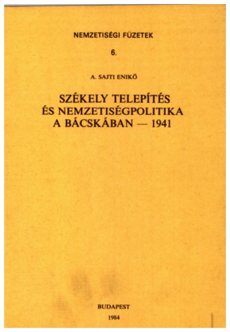 Sajti, Enikő (1984) Székely telepítés és nemzetiségpolitika a Bácskában - 1941. Nemzetiségi füzetek (6). Akadémiai Kiadó, Budapest. ISBN 963-05-3459-2