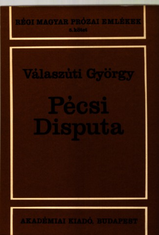 Dán, Róbert and Németh, S. Katalin, eds. (1981) Válaszúti György: Pécsi disputa. Régi magyar prózai emlékek (5). Akadémiai Kiadó, Budapest. ISBN 963-05-2342-6