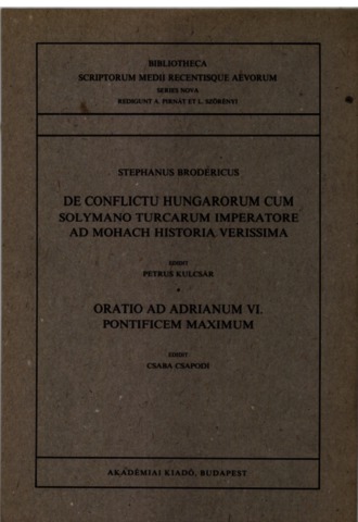 Brodarics, István (1985) De conflictu Hungarorum cum Solymano Turcarum imperetore ad Mohach historia verissima. Oratio ad Adrianum VI. pontificem maximum. Bibliotheca scriptorum medii recentisque aevorum. Series nova (6). Akadémiai Kiadó, Budapest. ISBN 963-05-3837-7