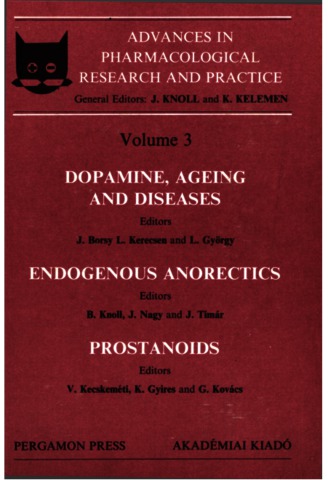 Knoll, J. and Kelemen, K, eds. (1986) 5. Dopamine, ageing and diseases 6. Endogenous anorecti 7. Prostanoids. Advances in pharmacological research and practice. Proceedings of the 4th congress of the Hungarian Pharmacological Society, Budapest, 1985. Advances in pharmacological research and practice (4/3). Akadémiai Kiadó, Budapest. ISBN 963-05-4337-0