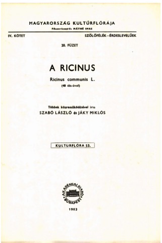 Szabó, L. and Jáky, M. (1983) A ricinus - Ricinus communis L .(IV/20.). Magyarország kultúrflórája (53). Akadémiai Kiadó, Budapest. ISBN 963-05-3291-3