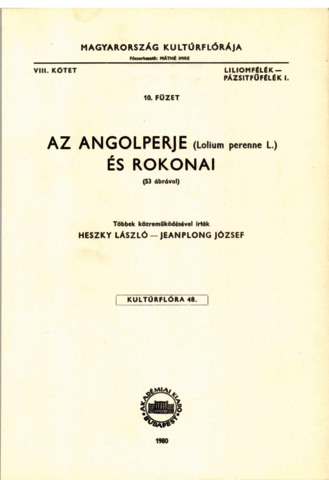 Heszky, L. and Jeanplong, J. (1980) Az angolperje - (Lolium perenne L.) és rokonai (VIII/10.). Magyarország kultúrflórája (48). Akadémiai Kiadó, Budapest. ISBN 963-05-2376-0