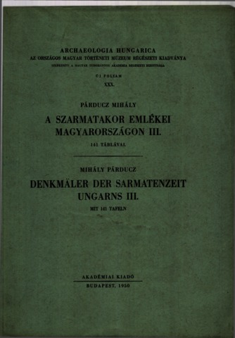 Párducz, Mihály (1950) A szarmatakor emlékei Magyarországon. Archaeologia Hungarica, Series nova (30). Akadémiai Kiadó, Budapest.