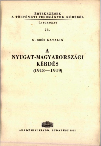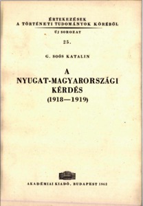 G. Soós, Katalin (1962) A nyugat-magyarországi kérdés 1918-1919. Értekezések a történeti tudományok köréből. Új sorozat (25). Akadémiai Kiadó, Budapest.