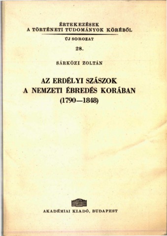 Sárközi, Zoltán (1963) Az erdélyi szászok a nemzeti ébredés korában 1790-1848. Értekezések a történeti tudományok köréből. Új sorozat (28). Akadémiai Kiadó, Budapest.