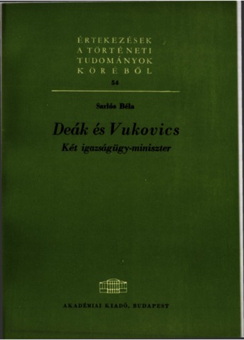 Sarlós, Béla (1970) Deák és Vukovics. Két igazságügy-miniszter. Értekezések a történeti tudományok köréből. Új sorozat (54). Akadémiai Kiadó, Budapest.