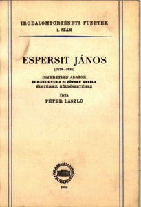Péter, László (1955) Espersit János, 1879-1931. Ismeretlen adatok Juhász Gyula és József Attila életéhez, költészetéhez. Irodalomtörténeti füzetek (1). Akadémiai Kiadó, Budapest.