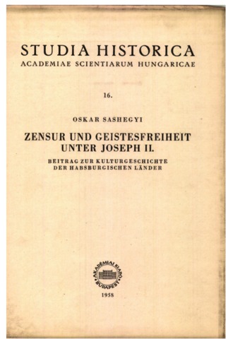 Sashegyi, Oszkár (1958) Zensur und Geistesfreiheit unter Joseph II. Beitrag zur Kulturgeschichte der Habsburgischen Länder. Studia historica Academiae Scientiarum Hungaricae (16). Akadémiai Kiadó, Budapest.