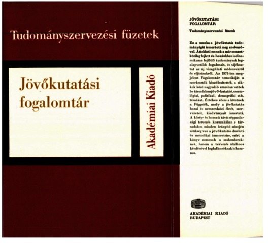 Schmidt, Ádám and Fodor, Judit and Haraszthy, Ágnes, eds. (1976) Jövőkutatási fogalomtár. Tudományszervezési füzetek . Akadémiai Kiadó, Budapest. ISBN 963-05-0975-X