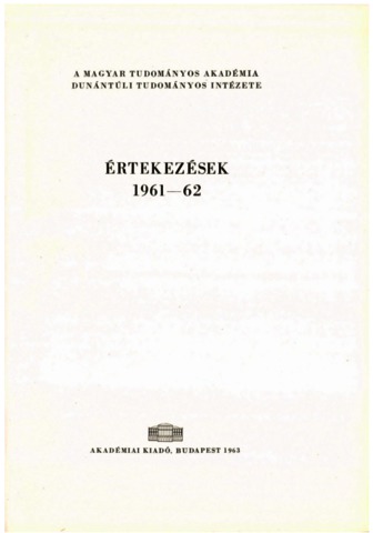 Babics, András, ed. (1963) A Magyar Tudományos Akadémia Dunántúli Tudományos Intézete : értekezések : 1961-62. A Magyar Tudományos Akadémia Dunántúli Tudományos Intézete. Értekezések . Akadémiai Kiadó, Budapest.
