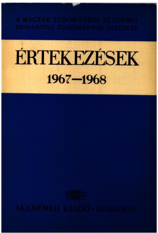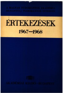 T. Mérey, Klára, ed. (1968) A Magyar Tudományos Akadémia Dunántúli Tudományos Intézete. Értekezések, 1967-1968. A Magyar Tudományos Akadémia Dunántúli Tudományos Intézete. Értekezések . Akadémiai Kiadó, Budapest.
