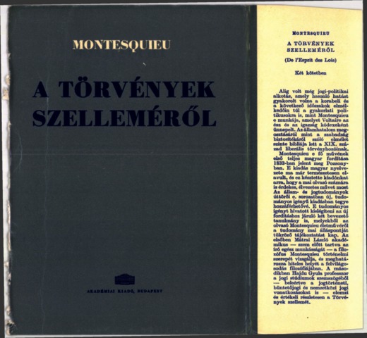 Montesquieu, Charles Louis de Secondat (1962) A törvények szelleméről 2. Az állam- és jogtudományok úttörői (5). Akadémiai Kiadó, Budapest.