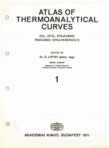 Liptay, György, ed. (1971) Atlas of thermoanalytical curves. TG-, DTG-, DTA-curves measured simultaneously 1. Atlas of thermoanalytical curves (1). Akadémiai Kiadó, Budapest. ISBN 963-05-5321-X