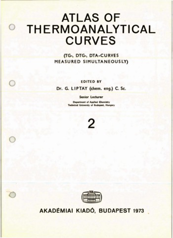 Liptay, György, ed. (1973) Atlas of thermoanalytical curves. TG-, DTG-, DTA-curves measured simultaneously 2. Atlas of thermoanalytical curves (2). Akadémiai Kiadó, Budapest. ISBN 963-05-5598-0