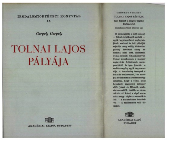 Gergely, Gergely (1964) Tolnai Lajos pályája : egy fejezet a magyar regény történetéből. Irodalomtörténeti könyvtár (15). Akadémiai Kiadó, Budapest.
