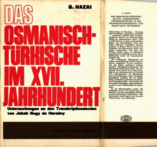 Hazai, György (1973) Das Osmanisch-Türkische im XVII. Jahrhundert : Untersuchungen an den Transkriptionstexten von Jakab Nagy de Harsány. Bibliotheca orientalis Hungarica (18). Akadémiai Kiadó, Budapest.