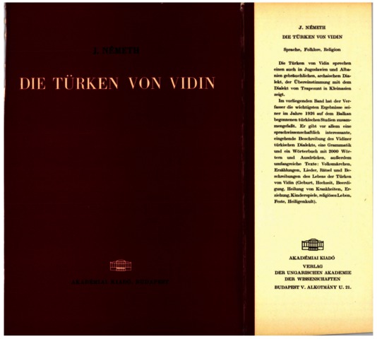 Németh, Gyula (1965) Die Türken von Vidin : Sprache, Folklore, Religion. Bibliotheca orientalis Hungarica (10). Akadémiai Kiadó, Budapest.