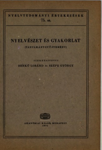 Benkő, Loránd and Szépe, György, eds. (1971) Nyelvészet és gyakorlat : tanulmánygyűjtemény. Nyelvtudományi értekezések (75). Akadémiai Kiadó, Budapest.