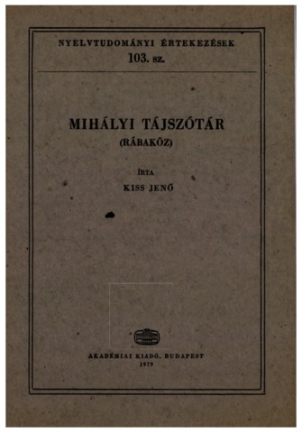 Kiss, Jenő (1979) Mihályi tájszótár : Rábaköz. Nyelvtudományi értekezések (103). Akadémiai Kiadó, Budapest. ISBN 963-05-1955-0