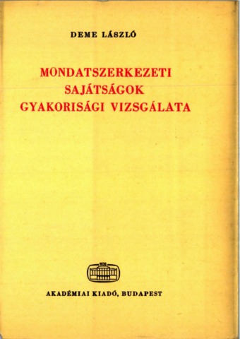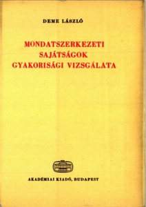 Deme, László (1971) Mondatszerkezeti sajátságok gyakorisági vizsgálata : magyar szövegek alapján. Nyelvészeti tanulmányok (15). Akadémiai Kiadó, Budapest.