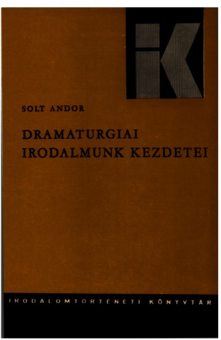 Solt, Andor (1970) Dramaturgiai irodalmunk kezdetei, 1772-1826. Irodalomtörténeti könyvtár (24). Akadémiai Kiadó, Budapest.