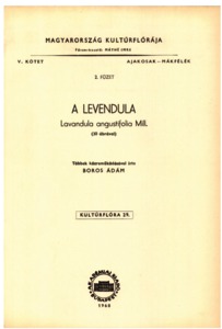 Boros, Ádám (1968) A levendula = Lavandula angustifolia Mill. Kultúrflóra (29). Akadémiai Kiadó, Budapest.