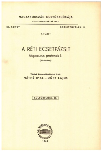Máthé, Imre (1968) A réti ecsetpázsit = Alopecurus pratensis L. Kultúrflóra (30). Akadémiai Kiadó, Budapest.
