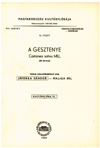 Jávorka, Sándor (1969) A gesztenye = Castanea sativa Mill. Kultúrflóra (31). Akadémiai Kiadó, Budapest.
