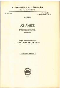 Szujkó-Lacza, Júlia (1976) Az ánizs = Pimpinella anisum L. Kultúrflóra (42). Akadémiai Kiadó, Budapest. ISBN 963-05-1093-6