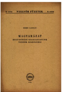 Deme, László (1955) Magyarázat helyesírási szabályzatunk 10. kiadásához. Nyelvőr füzetek (2). Akadémiai Kiadó, Budapest.