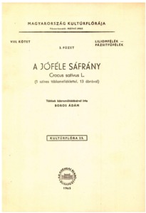 Boros, Ádám (1965) A jóféle sáfrány = Crocus sativus L. Kultúrflóra (25). Akadémiai Kiadó, Budapest.