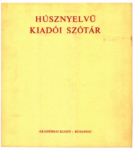 Móra, Imre, ed. (1974) Húsznyelvű kiadói szótár 1. Húsznyelvű kiadói szótár . Akadémiai Kiadó, Budapest. ISBN 963-05-0006-X