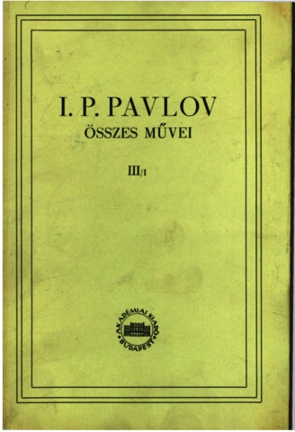 Pavlov, Ivan Petrovič, ed. (1954) I. P. Pavlov összes művei III/1. I. P. Pavlov összes művei (3/1). Akadémiai Kiadó, Budapest.