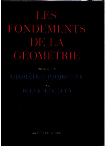 Kerékjártó, Béla, ed. (1966) Les fondements de la géometrie 2. Géométrie Projective. Les Fondements de la géometrie (2). Akadémiai Kiadó, Budapest.