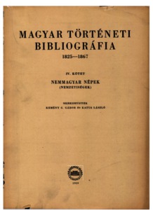 Kemény, G. Gábor and Katus, László, eds. (1959) Magyar történeti bibliográfia 1825-1867. 4. Nemmagyar népek (nemzetiségek). Magyar történeti bibliográfia (4). Akadémiai Kiadó, Budapest.