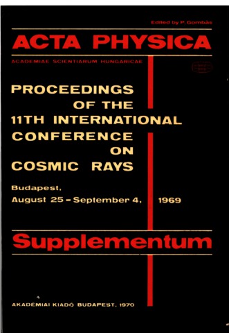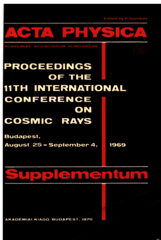 Somogyi, Antal, ed. (1970) Proceedings of the 11th International Conference on Cosmic Rays. Budapest, August 25-September 4, 1969. Acta physica Academiae Scientiarum Hungaricae, Supplementum (29). Akadémiai Kiadó, Budapest.
