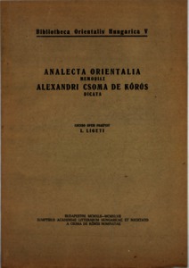 Ligeti, Louis, ed. (1942) Analecta orientalia memoriae Alexandri Csoma de Kőrös dicata. Bibliotheca orientalis Hungarica (5). Sumptibus Academiae Litterarum Hungaricae, Societatis a Csoma de Kőrös Nominatae, Budapest.