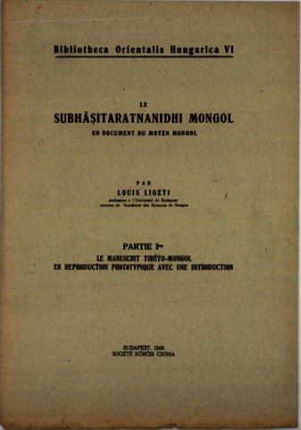 Ligeti, Louis (1948) Le Subhâsitaratnanidhi mongol : un document du moyen mongol. Bibliotheca orientalis Hungarica (6). Société Kőrösi Csoma, Budapest.