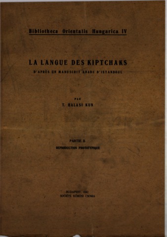 Halasi Kun, Tibor (1942) La langue des kiptchaks : d'après un manuscrit arabe d'Istanboul. Bibliotheca orientalis Hungarica (4). Société Kőrösi Csoma, Budapest.