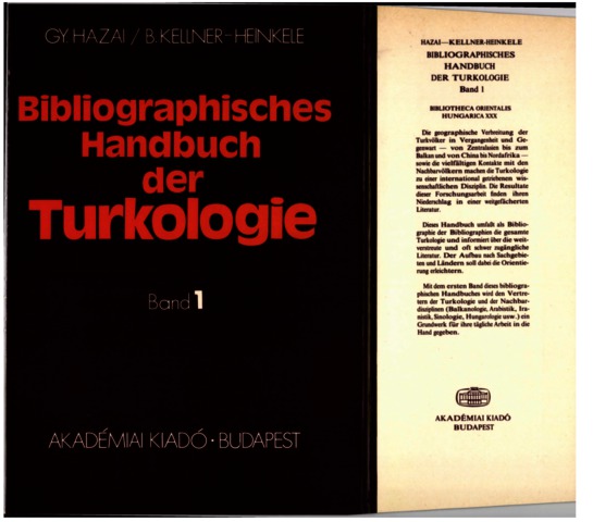Hazai, György and Kellner-Heinkele, Barbara, eds. (1986) Bibliographisches Handbuch der Turkologie : eine Bibliographie der Bibliographien vom 18. Jahrhundert bis 1979. Bibliotheca orientalis Hungarica (30). Akadémiai Kiadó, Budapest.