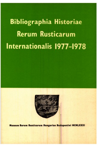 N. Kiss, István, ed. (1981) Bibliographia Historiae Rerum Rusticarum Internationalis 1977-1978. Bibliographia Historiae Rerum Rusticarum Internationalis . Akadémiai Kiadó, Budapest.
