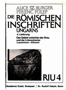 Burger, Alice Sz. and Fülep, Ferenc (1984) Die römischen Inschriften Ungarns (RIU). 4. Lieferung, Das Gebiet zwischen der Drau und der Limesstrecke Lussonium-Altinum. Die römischen Inschriften Ungarns (4). Akadémiai Kiadó - Rudolf Habelt Verlag, Budapest - Bonn.