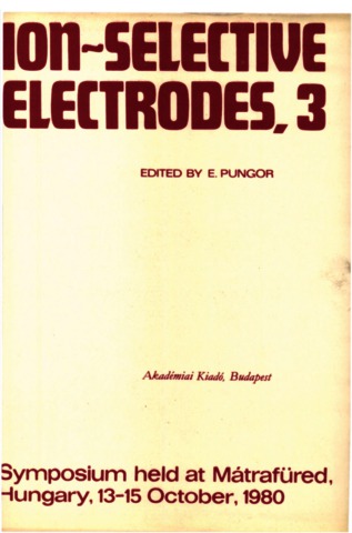 Pungor, Ernő and Buzás, I., eds. (1981) Ion-selective electrodes, 3 : Third Symposium held at Mátrafüred, Hungary, 13-15 October, 1980. Analytical Chemistry Symposia Series (8). Akadémiai Kiadó, Budapest.