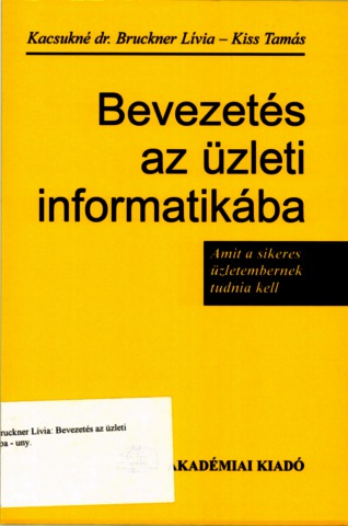 Kacsukné dr. Bruckner, Lívia and Kiss, Tamás (2002) Bevezetés az üzleti informatikába : amit a sikeres üzletembernek tudnia kell. Akadémiai Kiadó, Budapest.