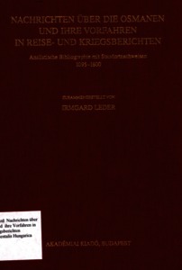 Leder, Irmgard (2005) Nachrichten über die Osmanen und ihre Vorfahren in Reise- und Kriegsberichten : analytische Bibliographie mit Standortnachweisen 1095-1600. Bibliotheca orientalis Hungarica (49). Akadémiai Kiadó, Budapest. ISBN 963-05-7838-7