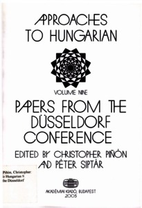Piñón, Christopher and Siptár, Péter, eds. (2005) Papers from the Düsseldorf Conference. Approaches to Hungarian (9). Akadémiai Kiadó, Budapest. ISBN 963-05-8259-7