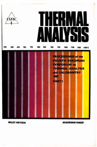 Schultze, D., ed. (1990) Proceedings of the Fourth European Symposium on Thermal Analysis and Calorimetry : EASTAC 4 : Jena, G.D.R., August 23-28. 1987. Akadémiai Kiadó - Wiley, Budapest - Chichester. ISBN 963-05-5468-2