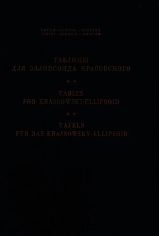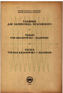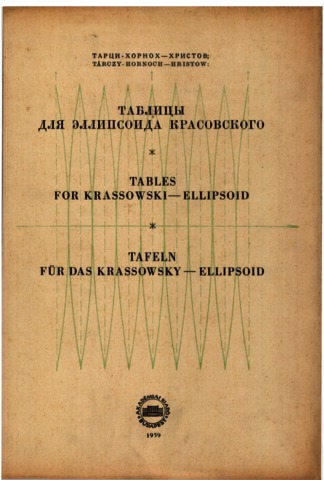 Tárczy-Hornoch, Antal and Hristov, Vladimir K. (1968) Tablicy dlâ èllipsoda Krasovskogo = Tables for the Krassowski-ellipsoid = Tafeln für das Krassowsky-Ellipsoid. Akadémiai Kiadó, Budapest.