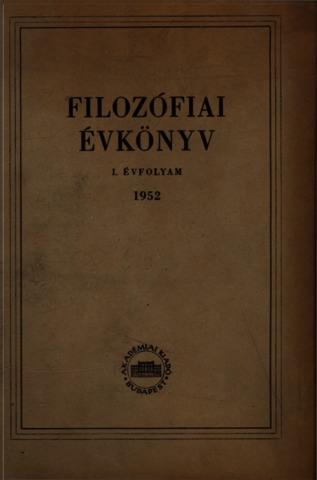 Fogarasi, Béla and Lukács, György and Mátrai, László and Molnár, Erik, eds. (1952) Filozófiai évkönyv 1952. Filozófiai évkönyv (1). Akadémiai Kiadó, Budapest.