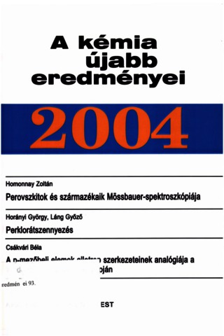 Homonnay, Zoltán and Horányi, György and Láng, Győző and Csákvári, Béla (2004) Perovszkitok és származékaik Mössbauer-spektroszkópiája | Perklorátszennyezés : egy új környezetvédelmi kihívás | A p-mezőbeli elemek allotrop szerkezeteinek analógiája a Wade-féle cluster-elmélet alapján, a legújabb irodalmi adatok értékelésével. A kémia újabb eredményei (93). Akadémiai Kiadó, Budapest.